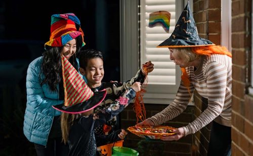 Be safe trick-or-treating. Pedestrian fatality rates spike on Halloween, according to the National Highway Traffic Safety Administration. When trick-or-treating, stick to sidewalks and crosswalks, use flashlights and reflective gear, and walk in groups. Stay in familiar neighborhoods and only visit homes with lights on.